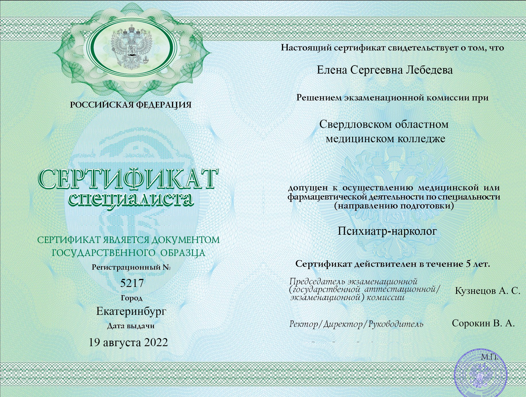 Елена Сергеевна Лебедева врач нарколог клиники доктора Стукаловой в Ялуторовске